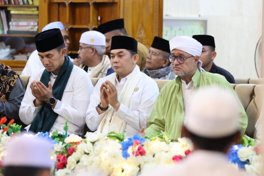 BATULICIN – Bupati Tanah Bumbu, Andi Rudi Latif, menghadiri Peringatan Maulid Nabi Besar Muhammad SAW 1447 H di Masjid Darul Falah, Kecamatan Simpang Empat, Selasa (16/9/2025). Ribuan jamaah hadir dalam suasana penuh khidmat untuk mengenang kelahiran Rasulullah SAW.