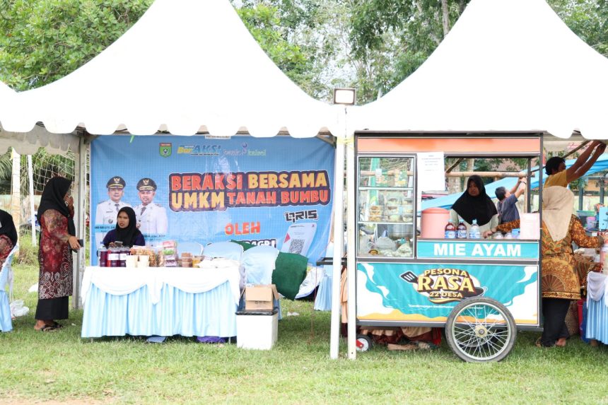 BATULICIN – Stand UMKM yang melibatkan masyarakat lokal turut memeriahkan pelaksanaan Aksi Sinergitas Merah Putih di Kecamatan Kuranji, Kabupaten Tanah Bumbu, Jumat (28/11/2025). Kegiatan ini merupakan inisiasi Bupati Tanah Bumbu, Andi Rudi Latif, dalam upaya mendekatkan pemerintah dengan masyarakat.