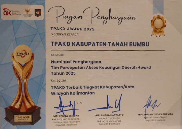 Pemkab Tanah Bumbu Raih Penghargaan TPAKD